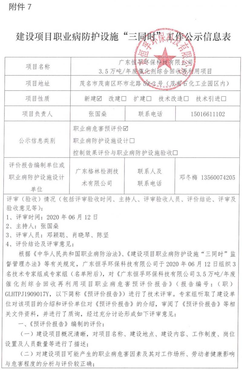 建設項目職業(yè)病防護設施“三同時”工作公示信息表(職業(yè)病危害預評價)